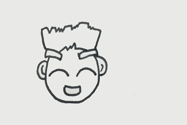 1、首先画出一家人中爸爸的脸,往上画出爸爸的头发,爸爸的头发要画出坚硬的感觉,然后画出爸爸脸上的眼睛、眉毛、嘴巴和耳朵。一家人中的爸爸就画好了。