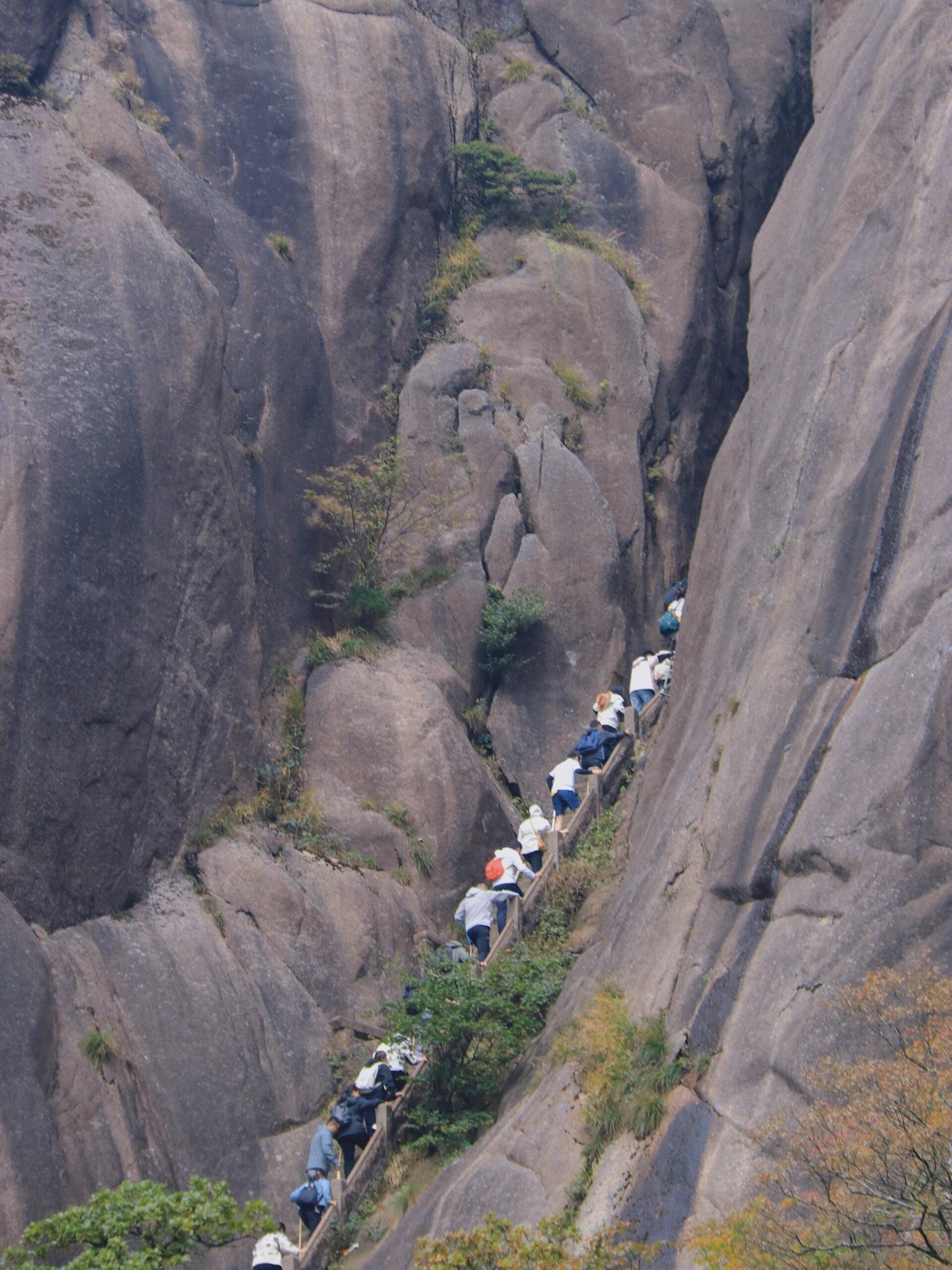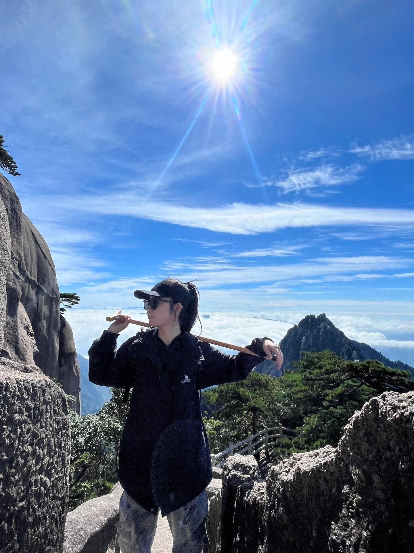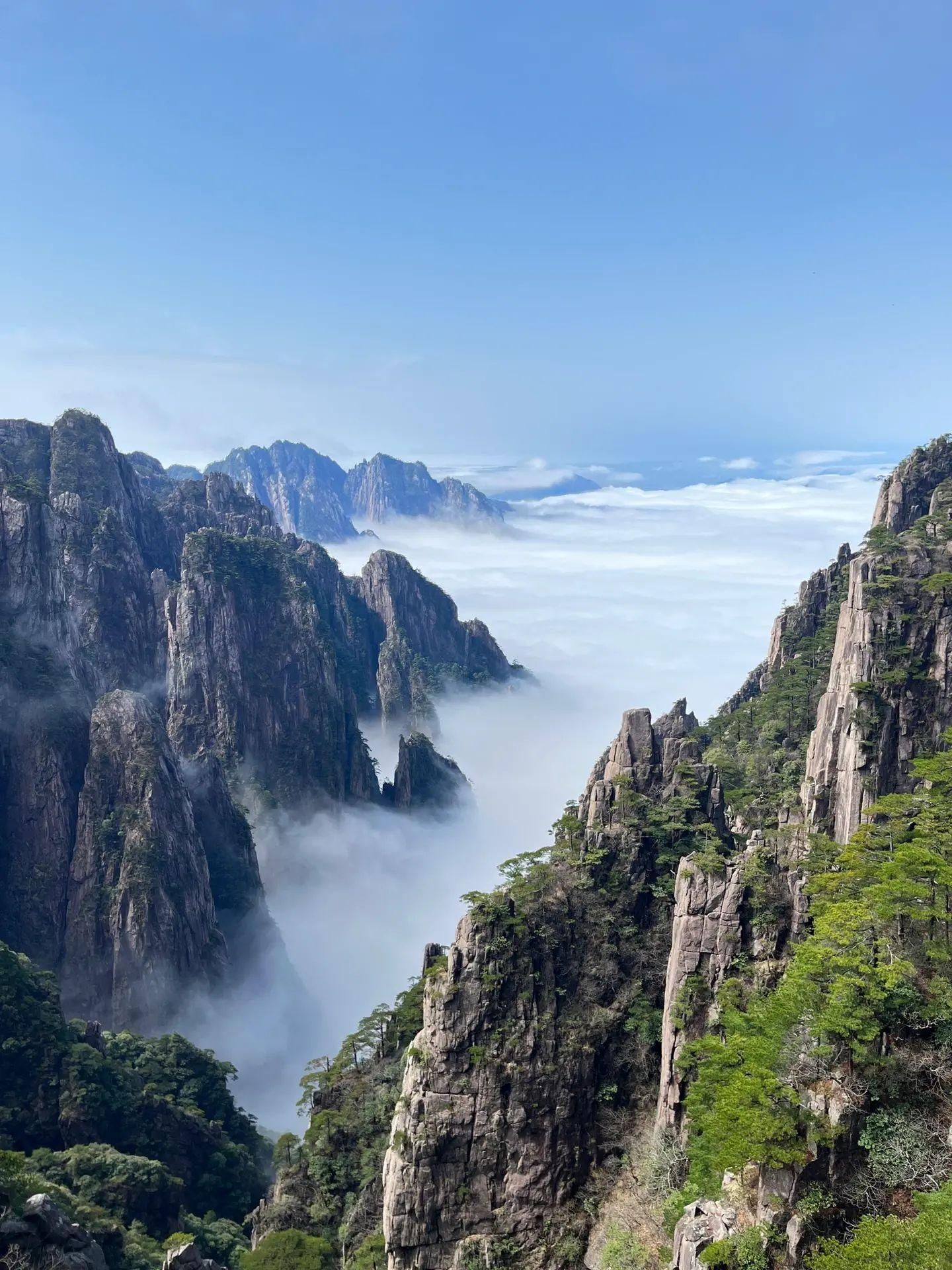 接下来,您可以前往天都峰。天都峰是黄山四绝之一,是登黄山必去的景点之一。站在巨大的石柱上俯瞰山下的云海,令人心旷神怡。