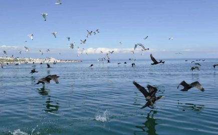 湖中盛产全国五大名鱼之一——青海裸鲤(俗称湟鱼)和硬刺条鳅、隆头条鳅。青海裸鲤平均年产量为5165吨,1949~1985年共生产裸鲤191180吨。