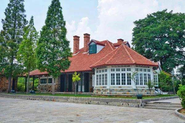 宽仁院坐落在威海市环翠区海滨北路南段的西侧,幸福门往南不远就是。宽仁院始建于1902年,由两组英式木骨石砌建筑组成,原为英商住宅,现为天主教堂。放眼望去,一组幽静、恬淡、平和的英式建筑座落在一个小山坡上,红瓦石墙,白色廊柱,天光日影,草木映衬,成为威海一道独特的人文景观。