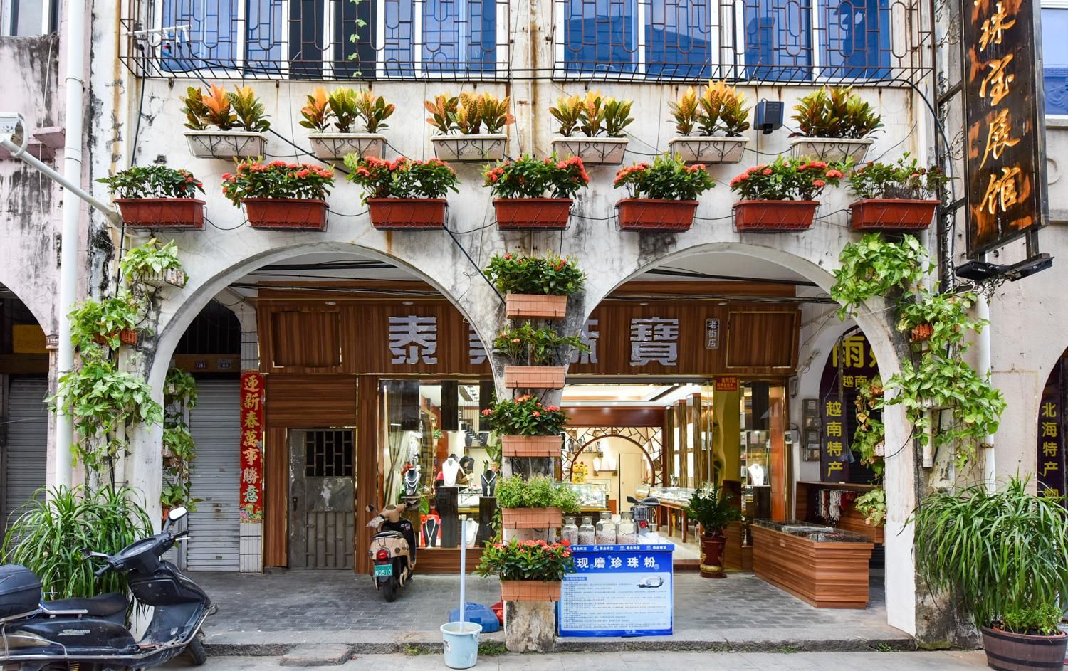 如果说银滩与涠洲岛是北海自然风光的代表,那么位于珠海路、中山路的老街就是北海历史人文的代表,这是一条始建于1821年的老街,距今已有200多年历史,全长约1.5公里,分布着英法德等国领事馆旧址、德国森宝洋行旧址和天主教堂女修院旧址等许多中西合璧的骑楼式建筑。如今的老街已被开发成一条特色的商业街,出售各种商品,你也可以在这里吃到比如香辣花螺、虾饼、猪脚粉等各种当地美食。漫步其间,可以感受到独属于北海的市井风情。