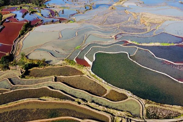 红河哈尼梯田位于云南南部,遍布于红河州元阳、红河、金平、绿春四县,总面积约100万亩,仅元阳县境内就有17万亩梯田。元阳梯田是哈尼族人1300多年来生生不息地“雕刻”的山水田园风光画。