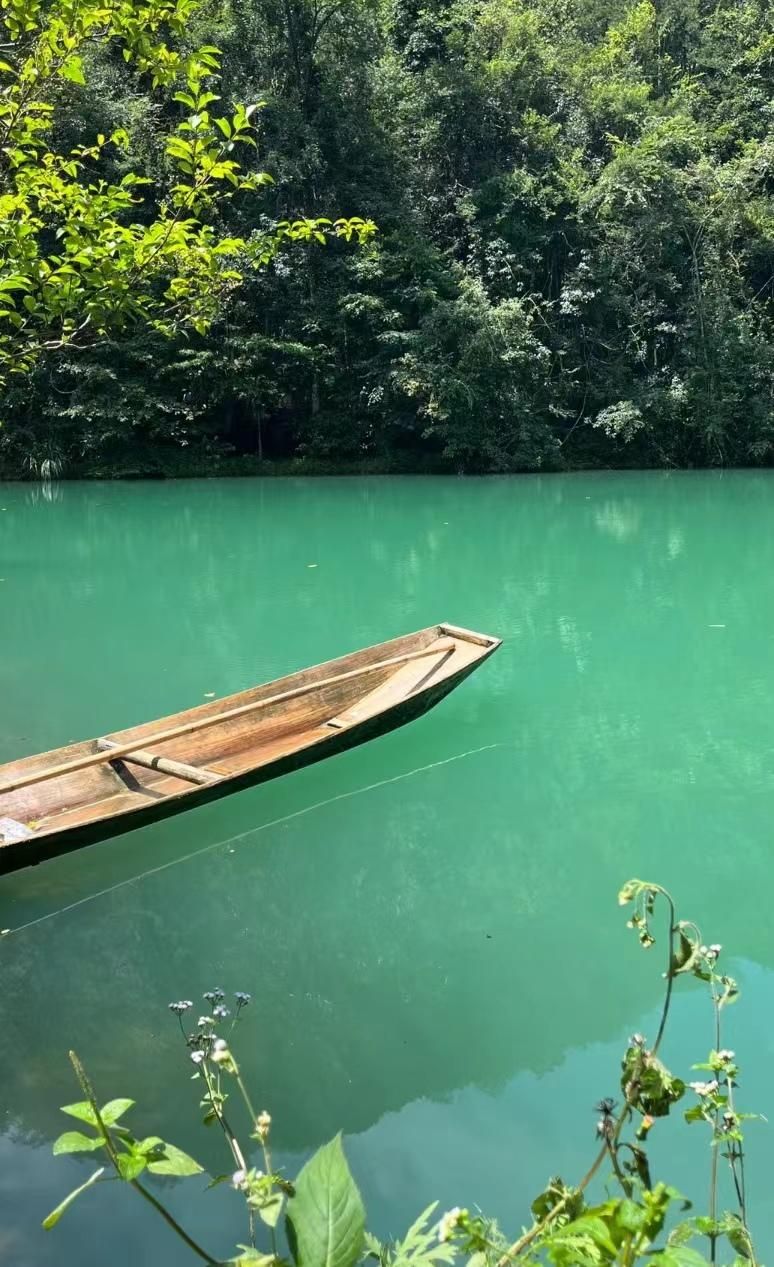 13:30到达小七孔景区东门,直接买船票,不排队,玩大七孔,坐船好凉快,船票才20块。大七孔很像漓江mini版,但山没有桂林秀气,不过水很绿,人很少,正中午的时间也很凉快。