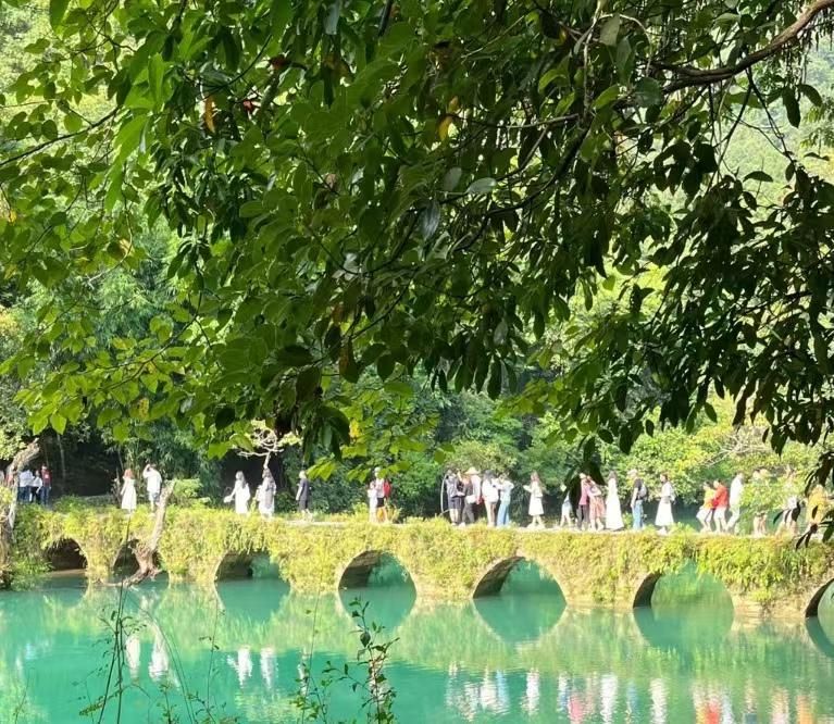 天星桥上半段强烈不推荐,我都懒得吐槽了。下半段的精华,主要是指由地下暗河组成整个景区的天星桥和银链坠潭瀑布。避开旅行团人流量会相对小些,体力要求较低,约需1.5小时。