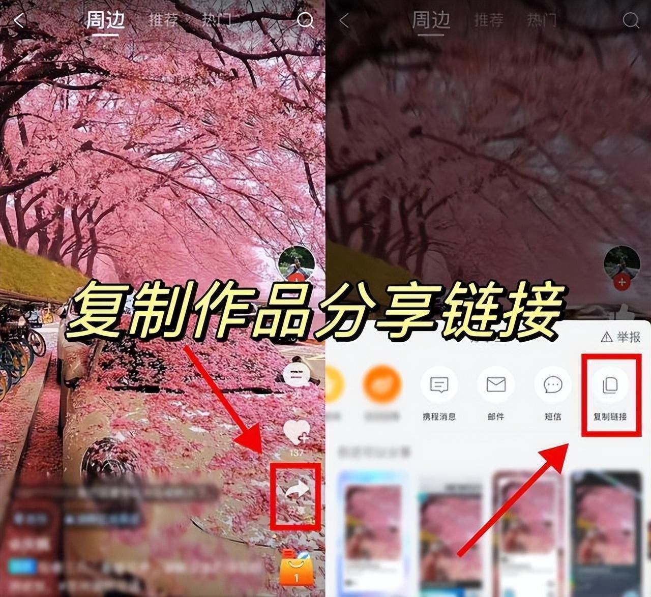 第一步:点击右下角的分享按钮,复制视频的分享链接