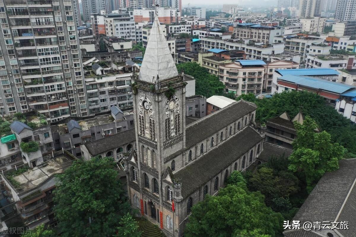 荣昌天主教堂位于重庆市荣昌城区西大街,俗称天主堂,堂高50米,占地4700多平方米。为省级文物保护单位,电影《1942》曾在此取景。该教堂于1915年由法国人设计并修建,主体建筑为哥特式建筑,是西南地区最高、保存最完好的天主教堂。