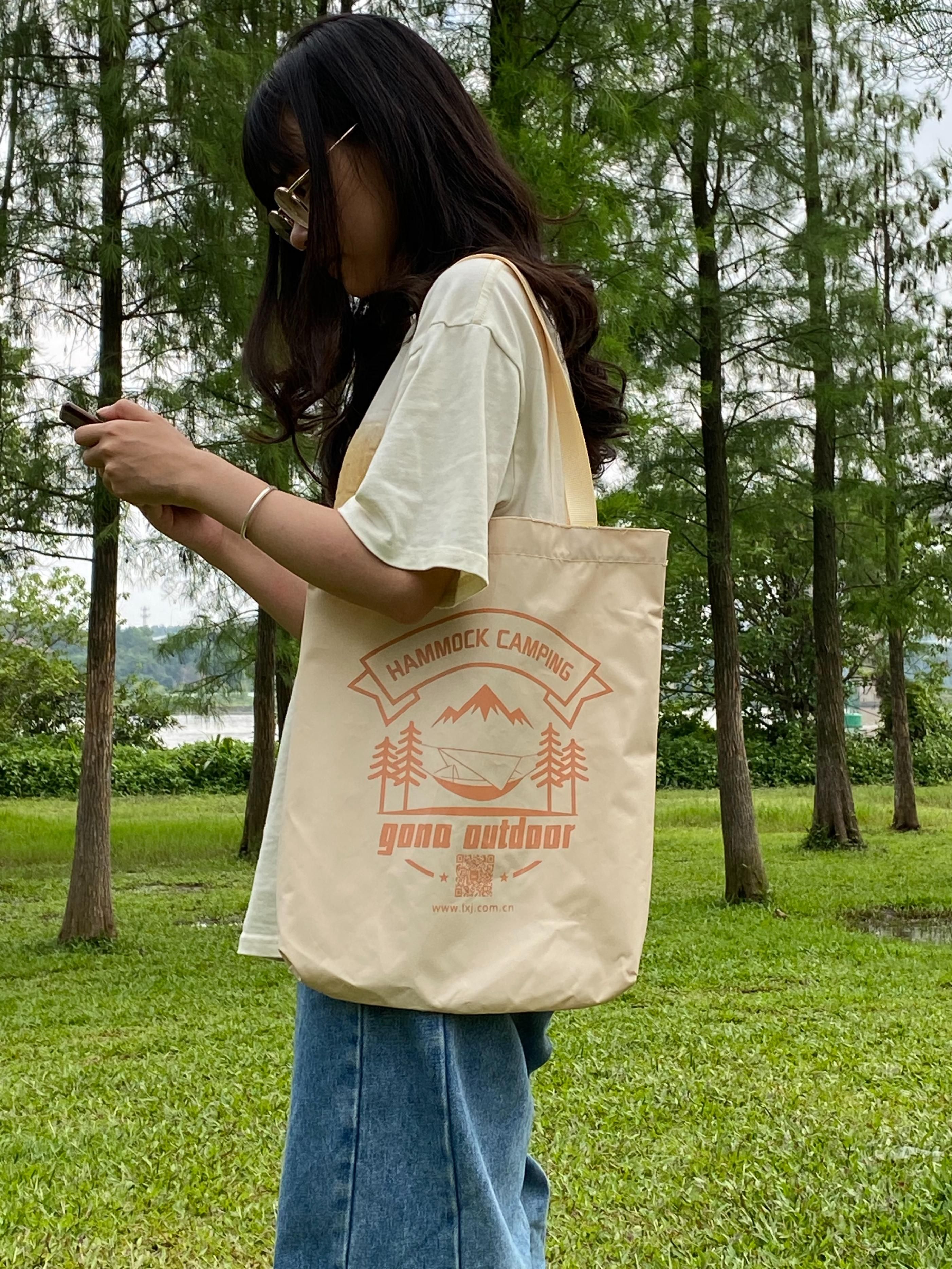 5. 随身携带包:帆布包通常轻便且易于折叠,适合作为随身携带包。你可以将它们放入其他大型背包或行李中,以备不时之需。