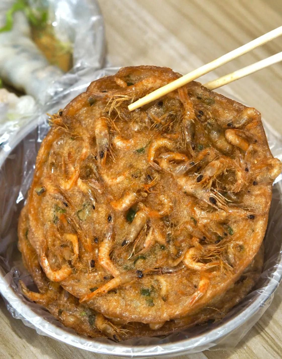 老街有很多有名的小吃,老字号李姨的虾饼门前常常是见了排着长长的一支队在等买虾饼,5元一只的虾饼,满满当当的小虾,现炸现吃又脆又香又新鲜。这家虾饼店上过央视"舌尖上的中国"。