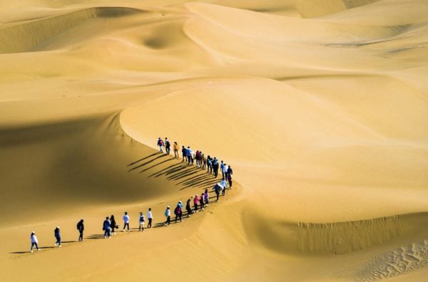 1、库木塔格沙漠:库木塔格沙漠是世界上唯一与城市相连的沙漠。史料记载,该沙漠命名形成于汉代,来自天山七角井风口和达坂城风口的东西两股狂风,挟带着罗布泊湖底的细沙,在此相遇碰撞并沉积而成,创造了“沙不进、绿不退、人不迁”的奇迹。库木塔格沙漠内有两条徒步路线,一条是从沙漠公园处到兰干村,大约10公里路程,可以一天走完。