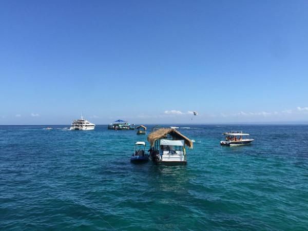 达到岛上,工作人员递上迎宾饮料给我们,边喝边休息一下,然后就可以随工作人员去做准备运动,这一环节,感觉还是很周到的。以前上体育课不也有准备运动麽?接着差不多9点半了,我们就开始玩水上节目了。我们可以玩浮潜、海底漫步、香蕉船还有滑梯。