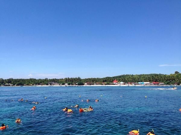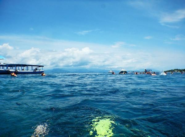 在这颗璀璨之星上,还有这样一个小岛,是到巴厘岛必游之地,那里水是蓝绿的,海草大片大片,浮潜,海底漫步,岛上骑自行车,跳水,滑梯,香蕉船,独木舟,所有这些项目不在诱惑着人们去体验一番。有那么多先行之人的照片,经常浮现在我们的眼前,让我们不禁心生一梦,就到蓝梦岛去吧。
