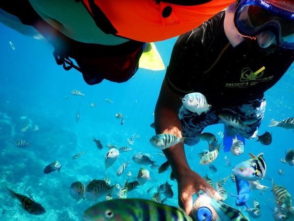 这两个水上活动,会游泳就更加自如好玩了。我们看到了很多海底生物,多姿多彩的,非常美。看着鱼儿的自由,不禁生出羡慕之情。