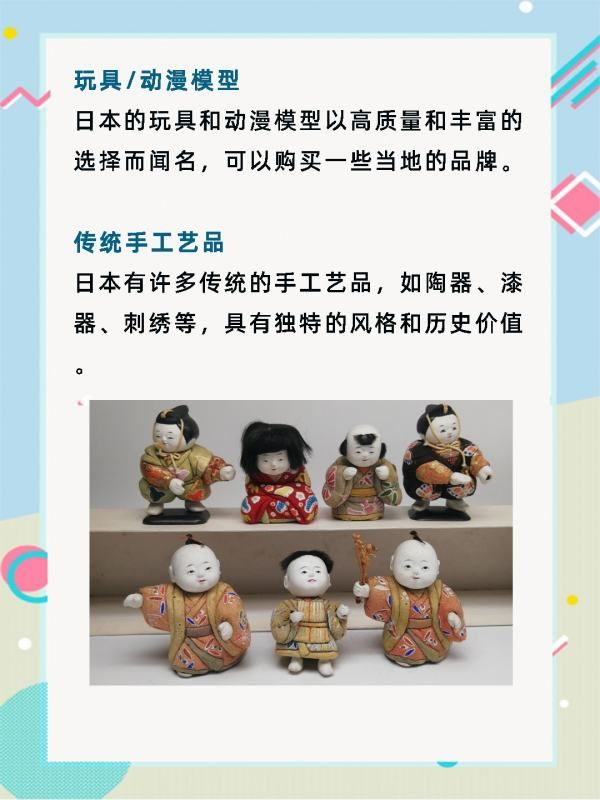 玩具/动漫模型:日本的玩具和动漫模型以高质量和丰富的选择而闻名,可以购买一些当地的品牌。