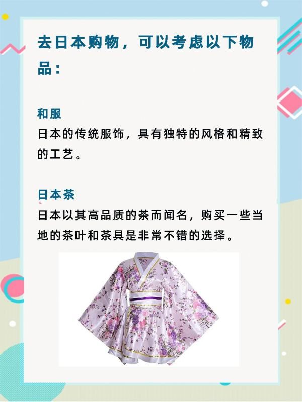 日本茶:日本以其高品质的茶而闻名,购买一些当地的茶叶和茶具是非常不错的选择。