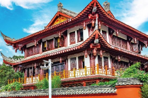 望江楼,位于四川省成都市武侯区望江路43号,九眼桥东南1千米,府河西岸。望江楼建筑群以崇丽阁为主,取晋代左思《蜀都赋》中既丽且崇之意命名,传为明清两代为唐代女诗人薛涛旧居而著名,现存望江楼为清光绪十五年建。