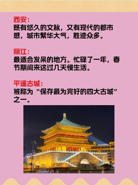 以上只是部分适合春节期间出游的地方,希望能为您提供一些参考。当然还有很多其他美丽的地方等待您去探索。