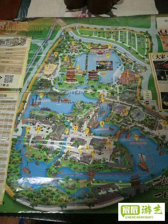 入园左手即是咨询服务处,一定领张游园秘籍(切记!),随即就开始了战地寻宝游戏。首先需要分析各个表演的时间和位置,设计好路线,重点确保下午只有一场的表演要看,那都是大型些的表演,那些重复表演多次的一般规模较小,尽量多看就是了。这张秘籍已经被我们蹂躏坏了,一直在“研究”呀。