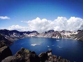 长白山天池是一座休眠火山,火山口积水成湖,夏融池水比天还要蓝;冬冻冰面雪一样的白,被16座山峰环绕,仅在天豁峰和龙门峰间有一狭道池水溢出,飞泻成长白瀑布。