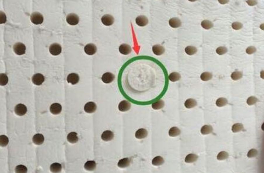 4、区分邓禄普和特拉雷工艺可以根据枕头上的注塑口,由于邓禄普工艺是先发泡后注模,在枕头的表面会留下一个圆形的注塑口,而使用特拉雷工艺生产的乳胶枕是没有的。