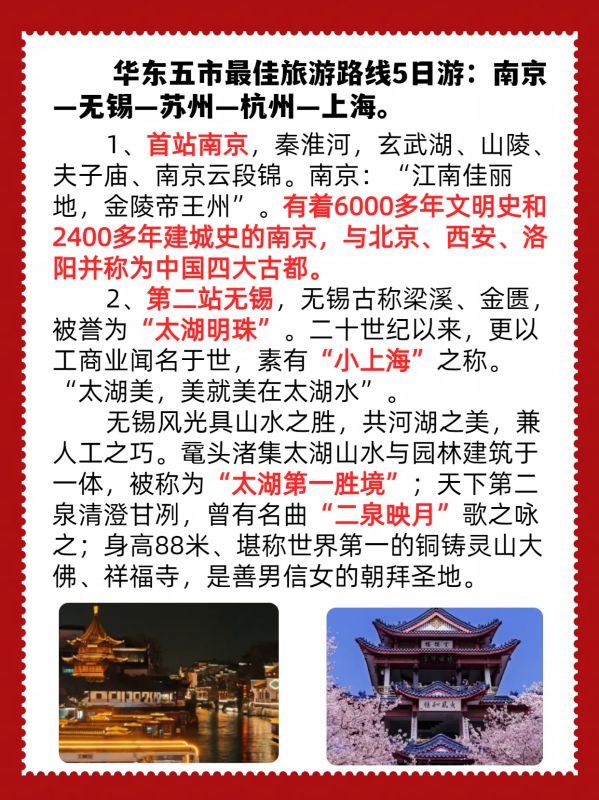华东五市最佳旅游路线5日游(华东五市旅游线路攻略)