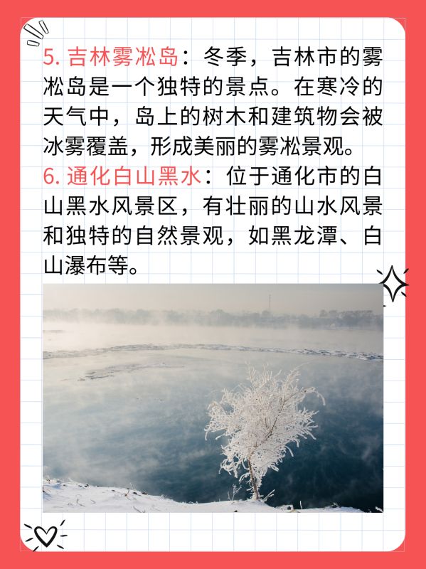 5. 吉林雾凇岛:冬季,吉林市的雾凇岛是一个独特的景点。