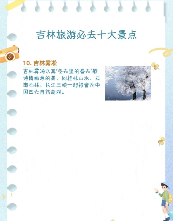 吉林的这十大景点,各有各的特色,有的让人心旷神怡,有的让人仿佛置身于童话世界。去了之后,你会发现,原来生活还有这么多美好的东西等着我们去发现、去欣赏、去体验。