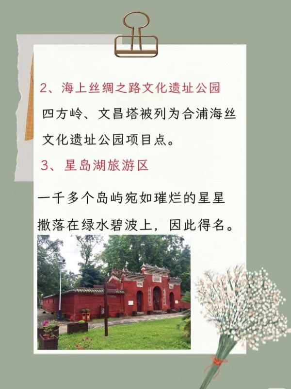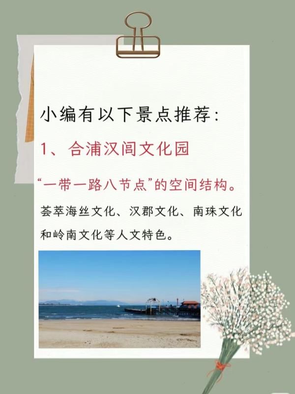 这个我知道!我特别喜欢旅游,上次去合浦旅游的时候,收集了合浦一些必去的景点资料。现在我把合浦十大必去景点的资料分享给需要的小伙伴们~