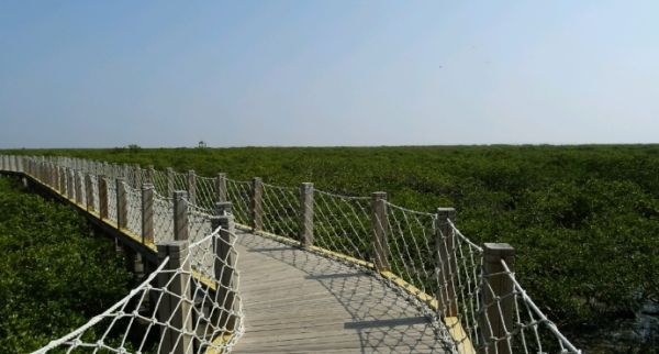 英罗红树林距离市区较远。林间的海水里生活着潮蟹、鼓虾等多种海洋动物。这里是国家一级保护动物儒艮(俗称美人鱼)栖息的场所,也是白鹭等许多海鸟的栖居地。