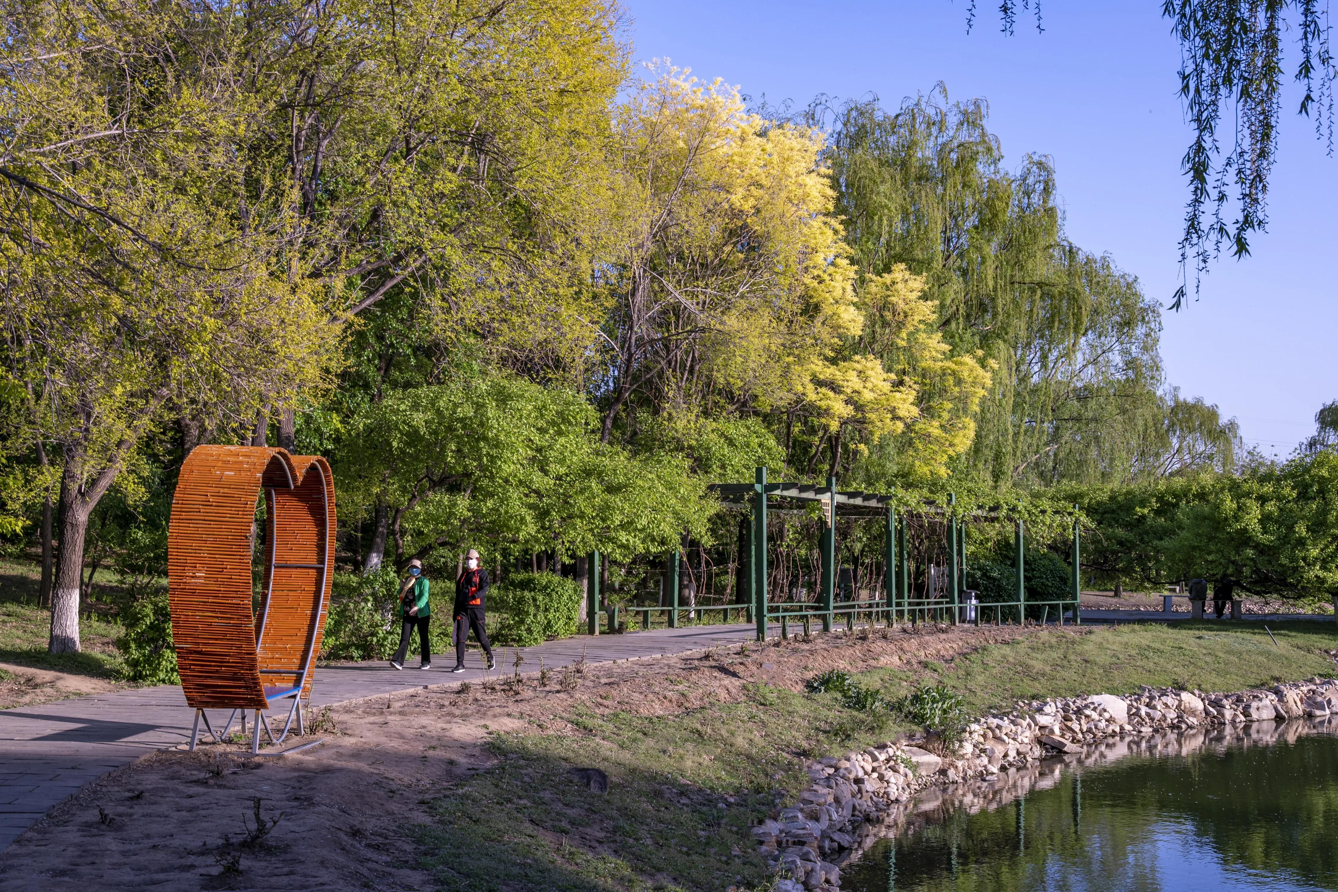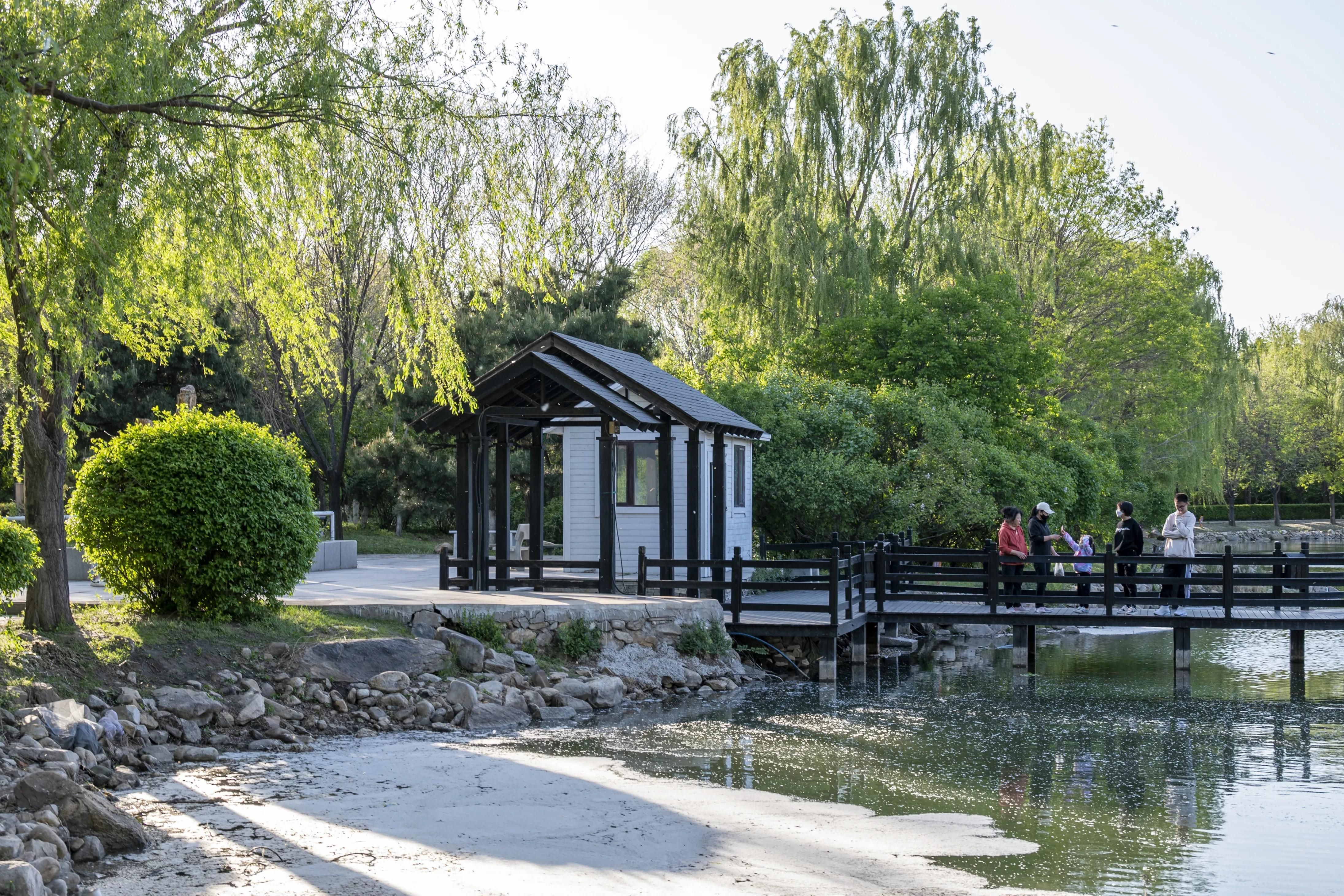 春末夏初,沐浴晨光,欣然游览植物园,兴高气爽。柳色如烟,小桥流水欢畅。水天一色,万木葱茏兴旺。牡丹花开富贵,鸢尾童话般张开笑脸带着希望。雕塑和红色建筑交相辉映,爱型微塑透露着远方美丽风光。睹景心生感慨,熊岳植物园,真是人们游览度假的好地方。