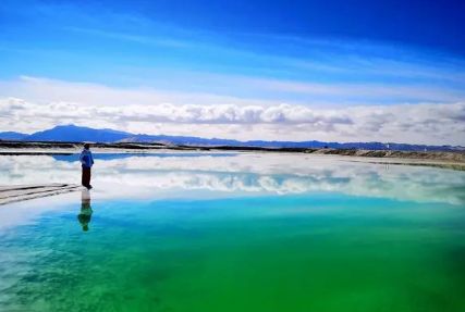 茶卡盐湖景区是柴达木盆地四大盐湖中的一个,也是开发最早的一个,距今已有3000多年的开采史。在这里低头仿佛看到了天堂,在这里触碰到另一个世界的自己,镶嵌在雪山草地间,天空白云悠悠,远处苍山峥嵘,蓝天白云,雪山映入湖中,如诗如画,所以也被称为――“天空之境”。