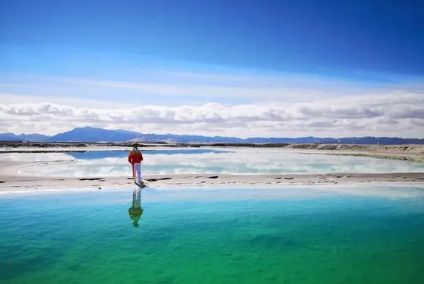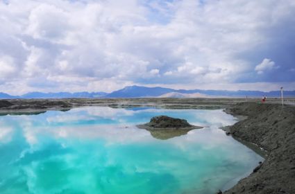 吉乃尔湖区深居柴达木盆地腹地,是一个以卤水为主的特大型锂矿床。湖的颜色与青海湖不同,由于含铜量较高湖水呈现出鲜绿色,岸边尽是覆盖着的白色结晶,被誉为“青海的马尔代夫”。湖的周围是大片的雅丹地貌,搭配上鲜绿色的湖水,犹如海上舰队。