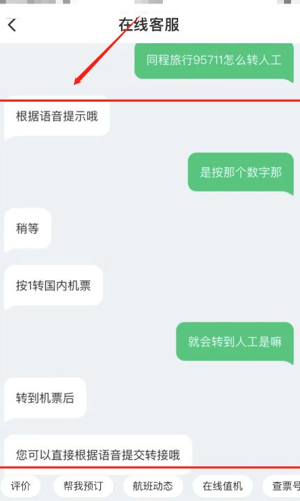 3、询问客服得知,同程旅行95711转人工需要按1转到机票,再按提示操作即可转入人工。