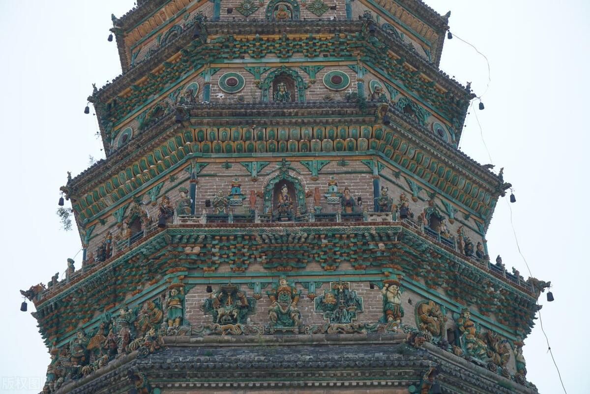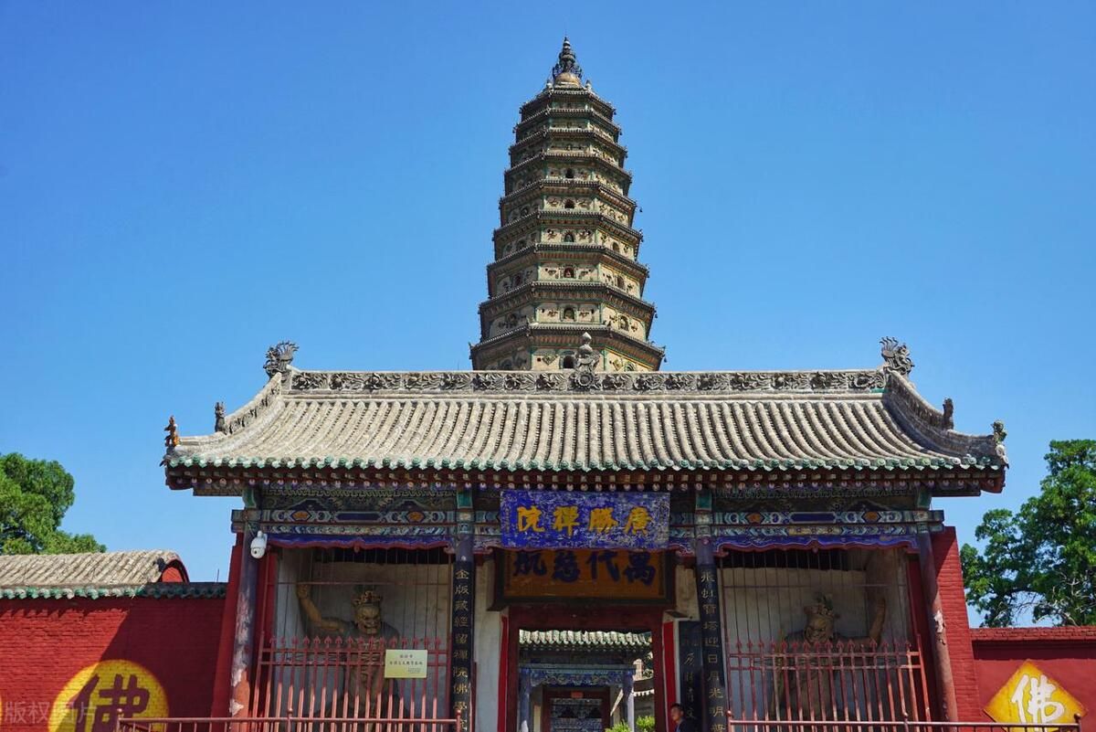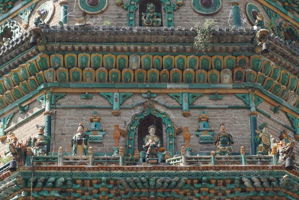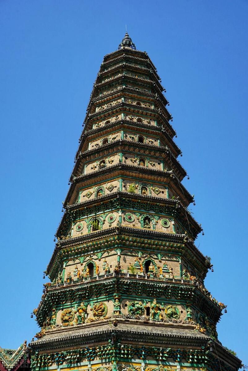 广胜寺,是一处元明古建筑群,飞虹塔、水神庙元代壁画以及《赵城金藏》为广胜寺三绝,其中飞虹塔,是现存最完整最古老的琉璃塔,也是世界上最高的多彩琉璃塔,被称为“琉璃宝塔,天下无双”,璀璨夺目。