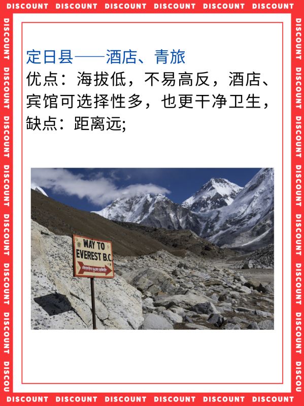 优点:位于珠峰景区旅游带,距离珠峰约49公里,是通往珠峰、洛子峰、和“世界十大景观”之一的“珠峰东坡一嘎玛沟”等旅游景区的必经之路,24小时供氧,不用为高反担忧,而且在这里也可以很好的观看星空。