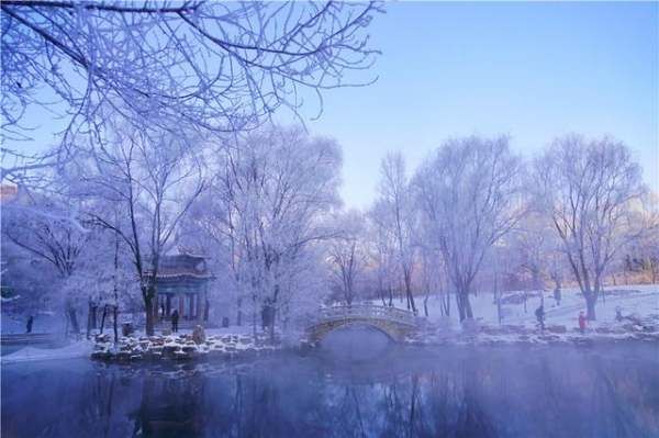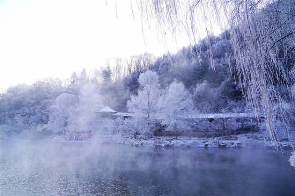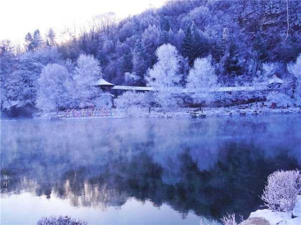 昨夜飞琼千万缕,谁剪条条晴雪?雾凇非冰非雪,而是由于雾中无数零摄氏度以下而尚未凝华的水蒸气随风在树枝等物体上不断积聚冻粘的结果,雾凇形成需要气温很低,而且水汽又很充分,同时能具备这两个形成雾凇的极重要而又相互矛盾的自然条件更是难得,本溪水洞外面的气温极低,而水洞内却是恒温的12度,内外冷热气流交融,为古琴湖的雾凇形成提供了有利的条件,而雾凇就算是东北人,也不是经常可以看到的。