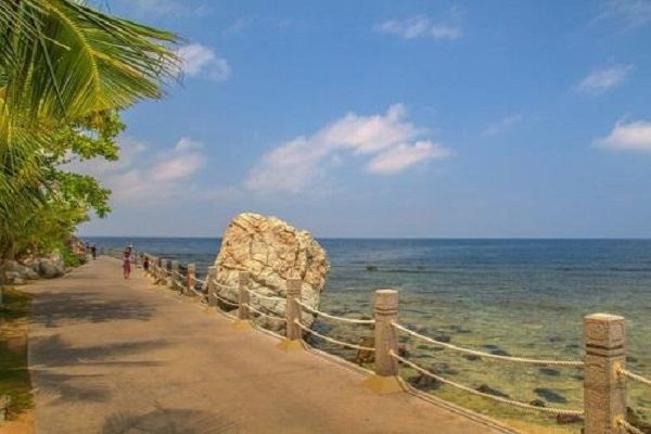 天涯海角游览区位于三亚市西南,主要由“天涯”石、“海角”石、“南天一柱”等景点构成,海水澄澈,帆影点点,怪石林立,一派自然风光。