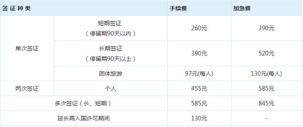 关于韩国签证需要多少钱,根据签证种类的不同,韩国签证需要的手续费不同。单次签证一般只需要260元,两次签证445元,多次签证585元,如果是需要加急的则要加上手续费130元,详情请看下表: