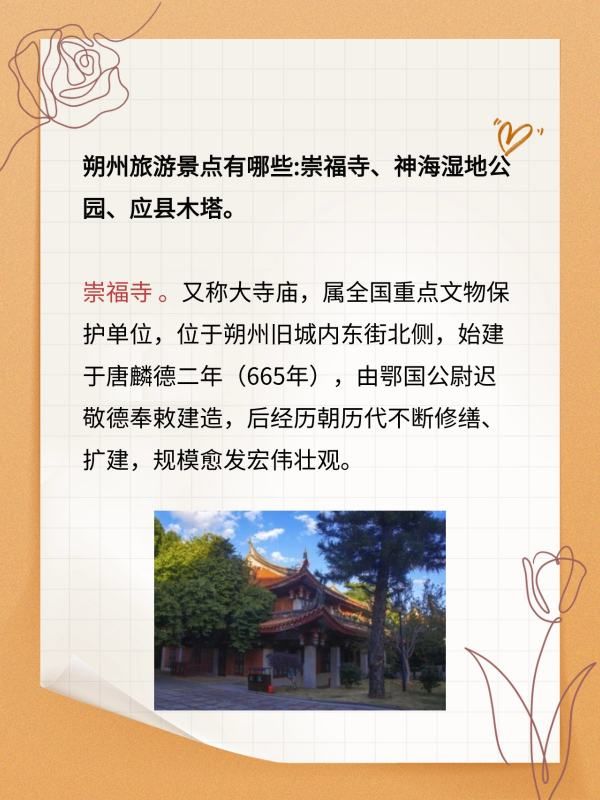朔州旅游景点有哪些:崇福寺、神海湿地公园、应县木塔。