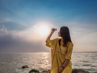 旅行的时候,换了不一样地方,当然要感受当地的阳光的新鲜空气啦,抬起头,面向阳光,闭眼,做个感受的动作,很美很有意境。