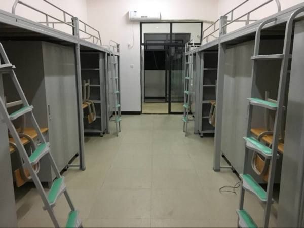 ②专科生一般来说是八人间,但是据我所知也有不少住六人间,所以到时候就是拼运气的时候了。虽说八人间比六人间多人,但是相应的空间也比六人间大。八人间进门左右两边有各有两架床,上下铺,一共八张床,有点高中的感觉。麻雀虽小五脏俱全,在宿舍中央有八张桌子,一人一张,还是能满足日常需求的。也有独立的厕所,卫生间和阳台。