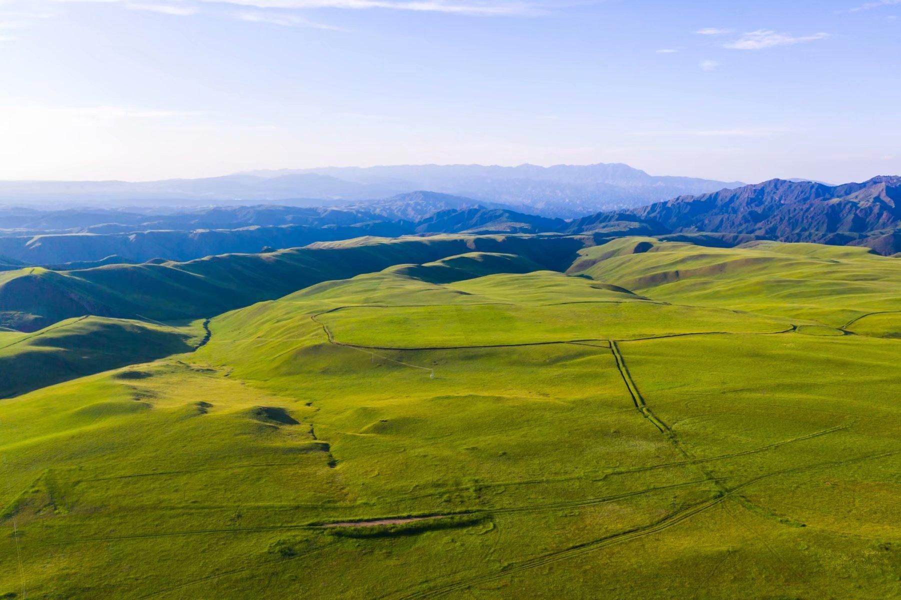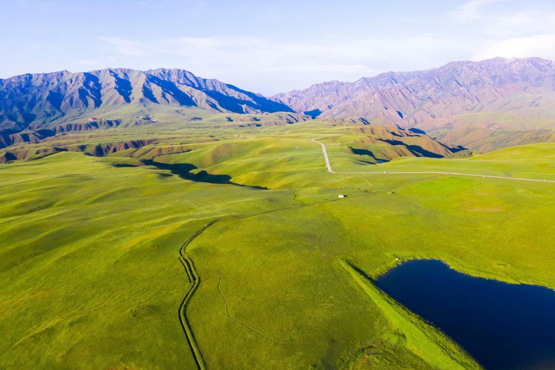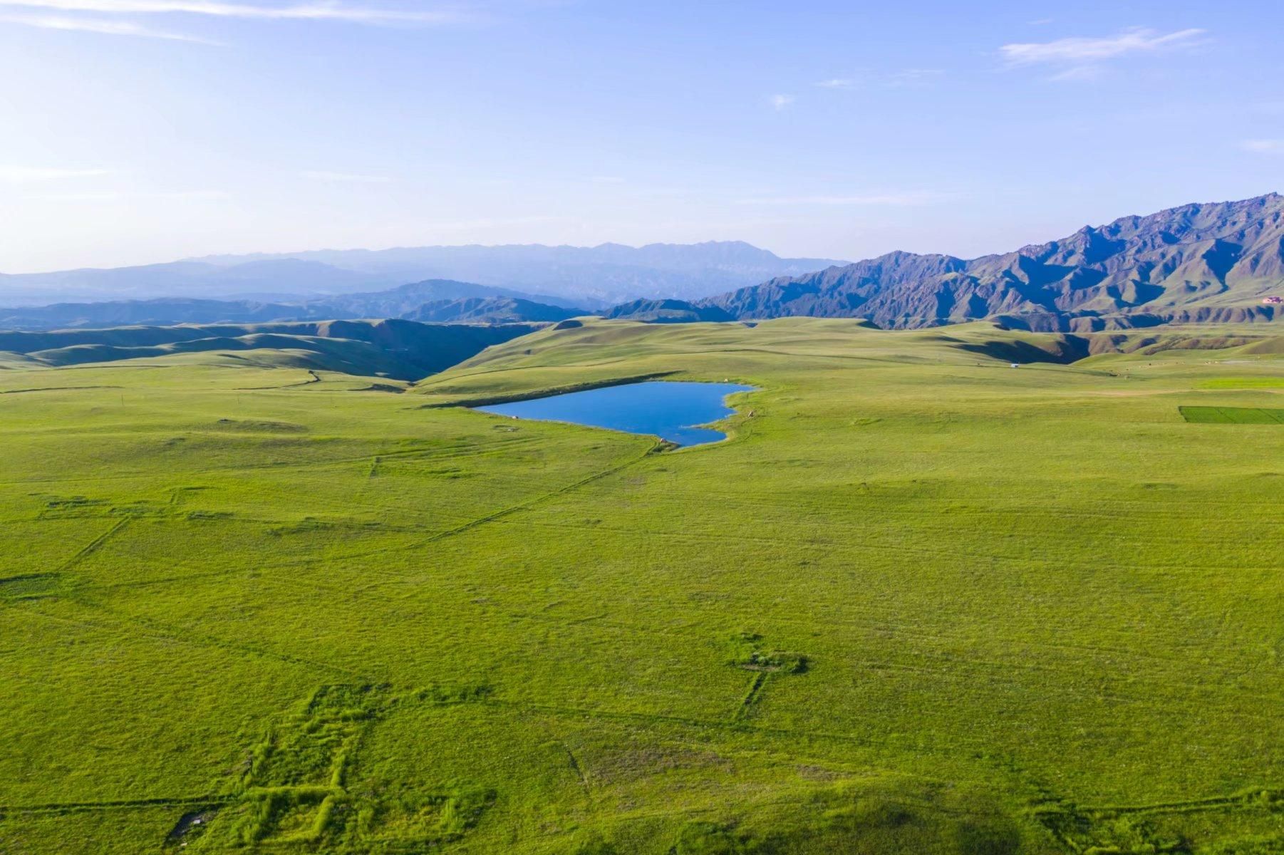 极目望去甚至可以看到祁连山脉的积雪,蓝天白云下翠绿的草原,这里的每一帧都可以当做屏保。