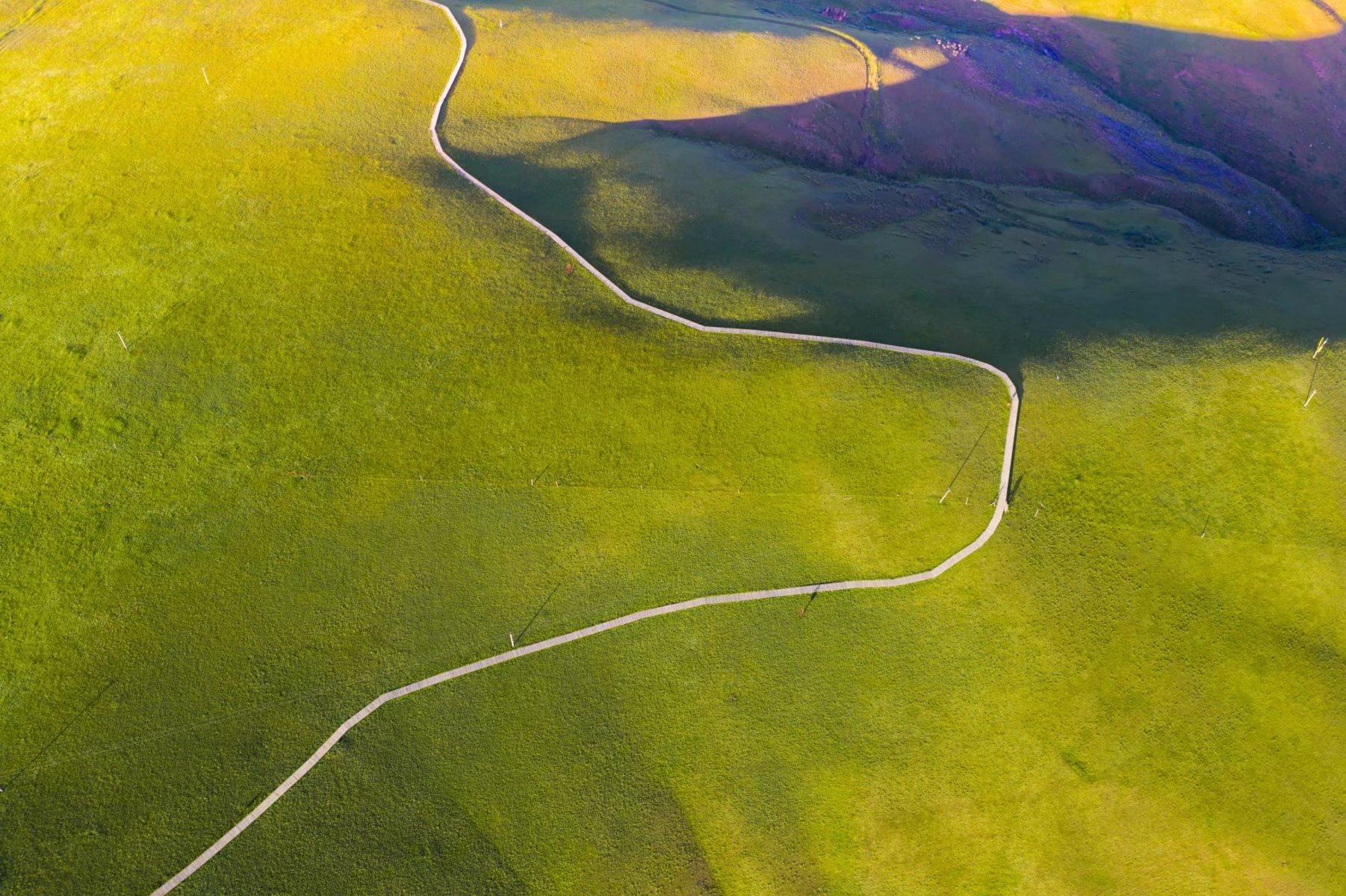 到九月初,草地开始逐渐发黄,从空中鸟瞰宛如一块上帝的调色板。