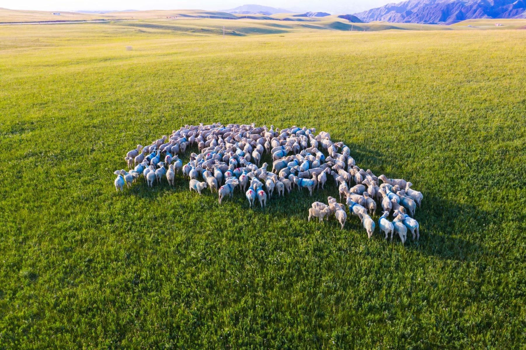 漫步在草原上,看绵羊悠闲的吃着草儿,或与小羊在阳光下一起奔跑,感受大自然生机与活力。