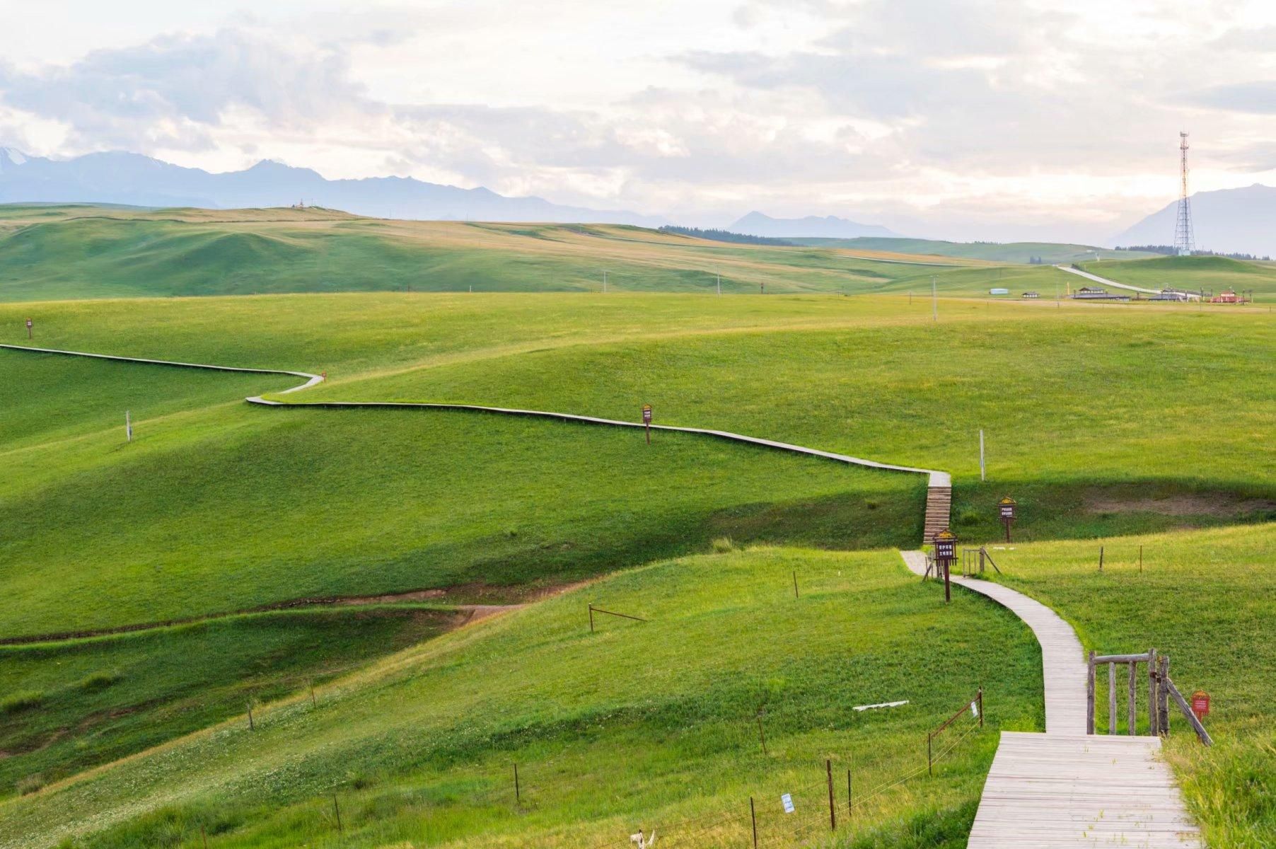 木板铺成的人行道曲折婉转,穿过翠绿草原向更深处蔓延。置身于此,欧洲田园风光气息扑面而来。