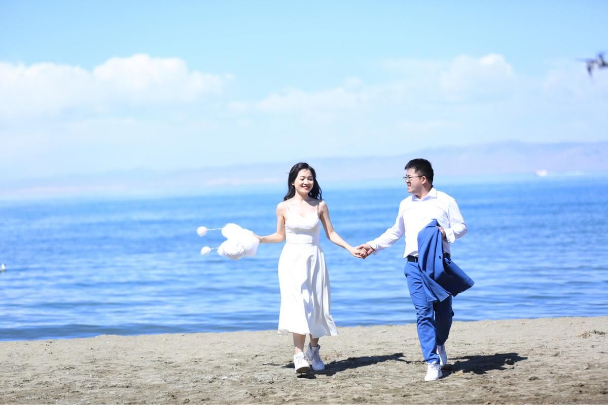 青海湖有一个的特点,那就是海天一色,天是什么颜色,湖水就是什么颜色。你们看,近处的天白云朵朵,湖水就变得银光闪闪;那边的天乌云翻滚,湖水又变得黑里透亮;远处的天深蓝深蓝,那湖水也就深蓝深蓝。