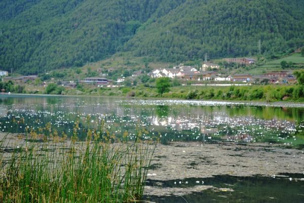 泸沽湖,亦称永宁海、左所海、勒得海、落水海子,是一个高原淡水湖,位于中华人民共和国云南省北部、四川省西南部。湖泊东南面长满水草的大片湿地称为草海,广阔的水域称为亮海,湖面海拔2690米,面积48.45平方千米。泸沽湖是川、滇两省共管的湖泊,湖水透明洁净,属中国Ⅰ类水质,但环境问题也相当严峻。