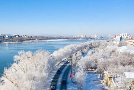 2、环绕的群山和回转的松花江水,使吉林市形成“四面青山三面水,一城山色半城江”的天然美景。吉林市是四季皆宜的旅游胜地,尤以冬季风光最佳。隆冬时节,松花江上雾气蒸腾,玉树琼花,银雕玉砌,已成为吉林市旅游产品的王牌项目。每年12月中旬至次年2月底,是看雾凇的最佳时节,十里长堤之上,是松柳银装,游人漫步于此,犹如仙境之中。