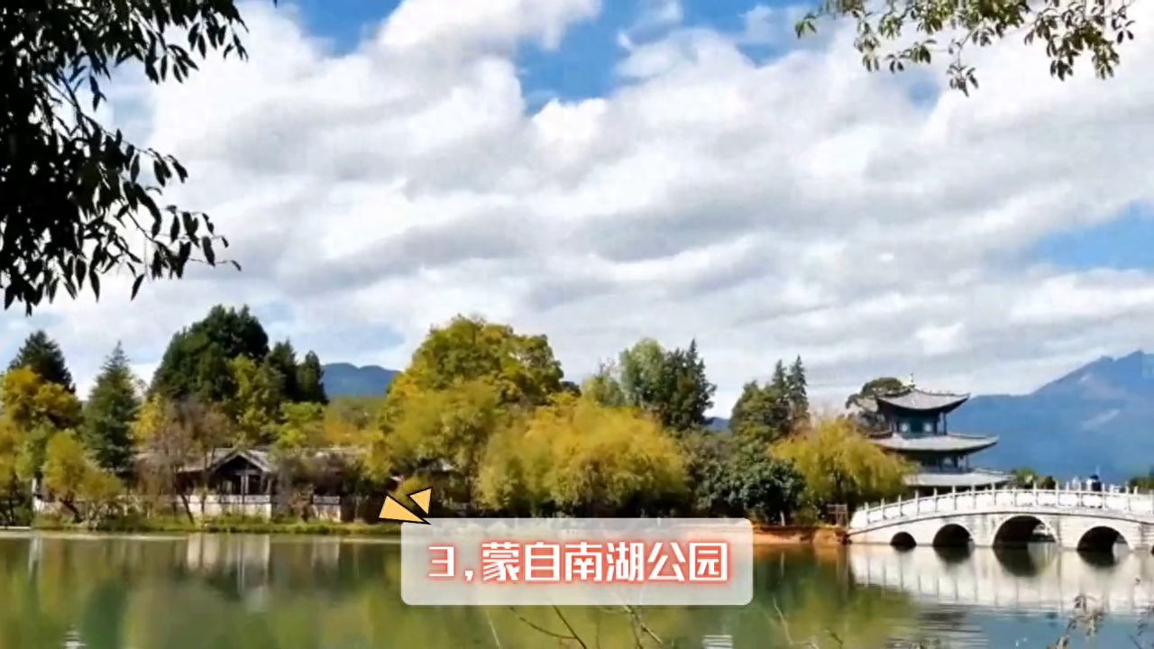 ·3、蒙自南湖公园。这是一个美丽的公园,有着优美的湖泊和花园,是休闲散步的好去处。