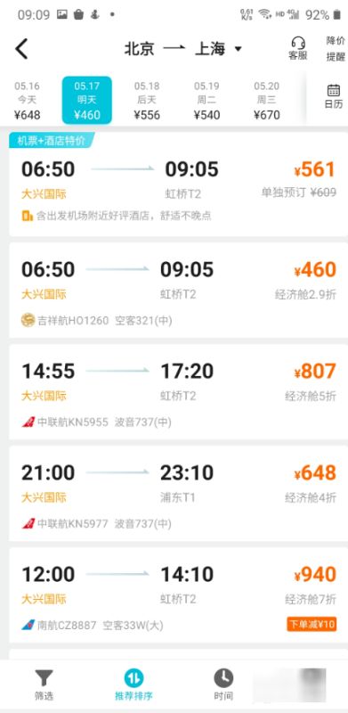 3、输入完成后,我们就可以选择相应的航班进行购买机票。