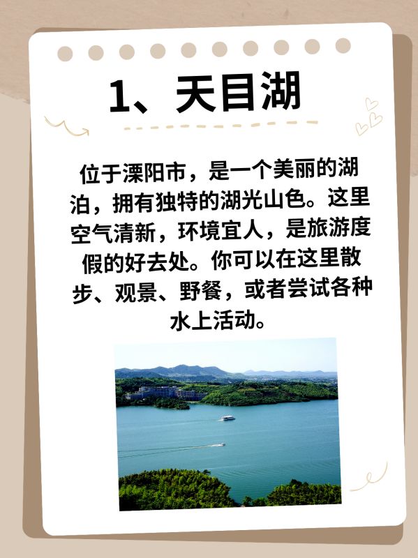 注:天目湖旅游度假区天目湖旅游度假区有四个景点,其中南山竹海和御水温泉都在山上靠得很近,第一次来溧阳一定不能错过。